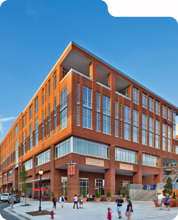 100,000 sf mixed use retail/office building. Project included foundations, 20 ft walls, slab on deck, suspended slab